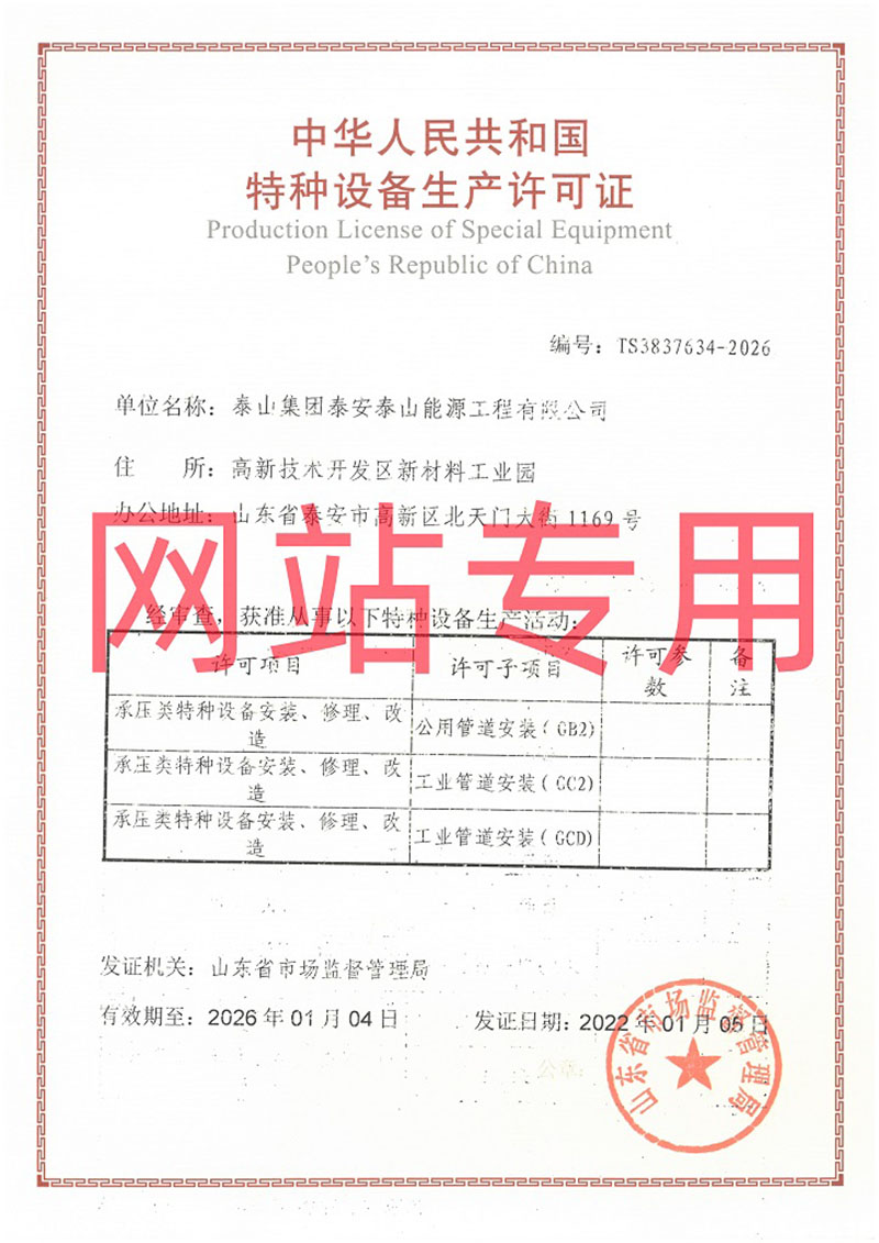 特種設備安裝改造維修許可證(壓力管道)